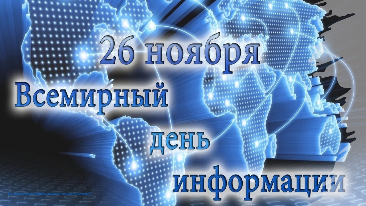 Праздник Всемирный день информации отмечается каждый год 26 ноября. Дата имеет символическое значение. Именно в этот день в 1992 году впервые прошел всемирный форум, посвященный информатизации. Инициаторами создания праздника выступили Международная Академия Информатизации и Всемирный информациологический парламент.